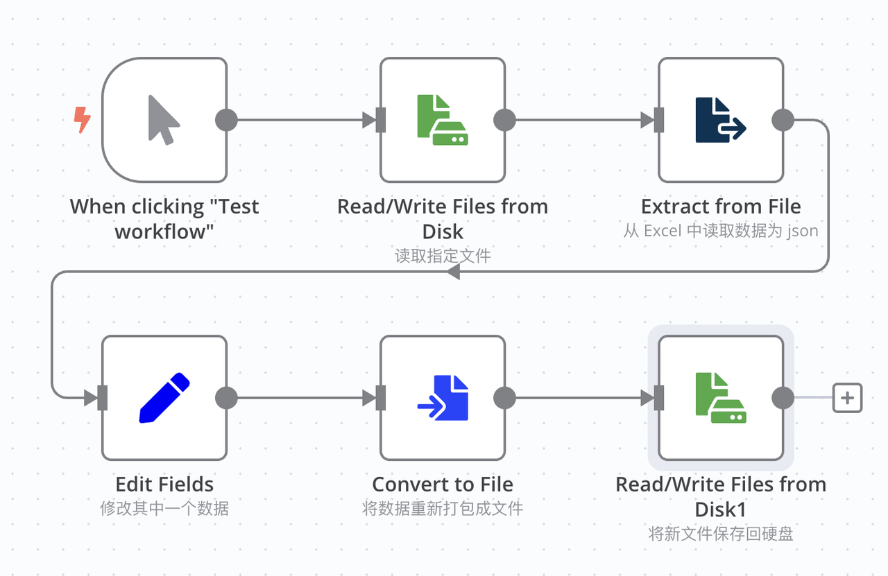 对于AI而言,n8n扮演了关键角色:它就是你递给那个“思考者”的双手和工具箱。它打通了AI大脑与其他应用程序(如Excel、PDF、网站)之间的通道,让AI能像我们一样,实际地打开文件、读取数据、执行操作。